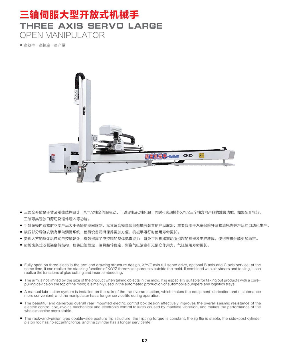 三軸伺服大型開放式機械手
